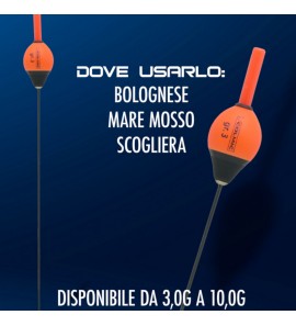 Leaded float with side-passing wire, polyurethane body, fiberglass stem and plastic housing for 4.5mm antennas and starlight.