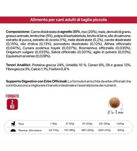 Complete food for small dogs, simple, genuine ingredients and nothing else.