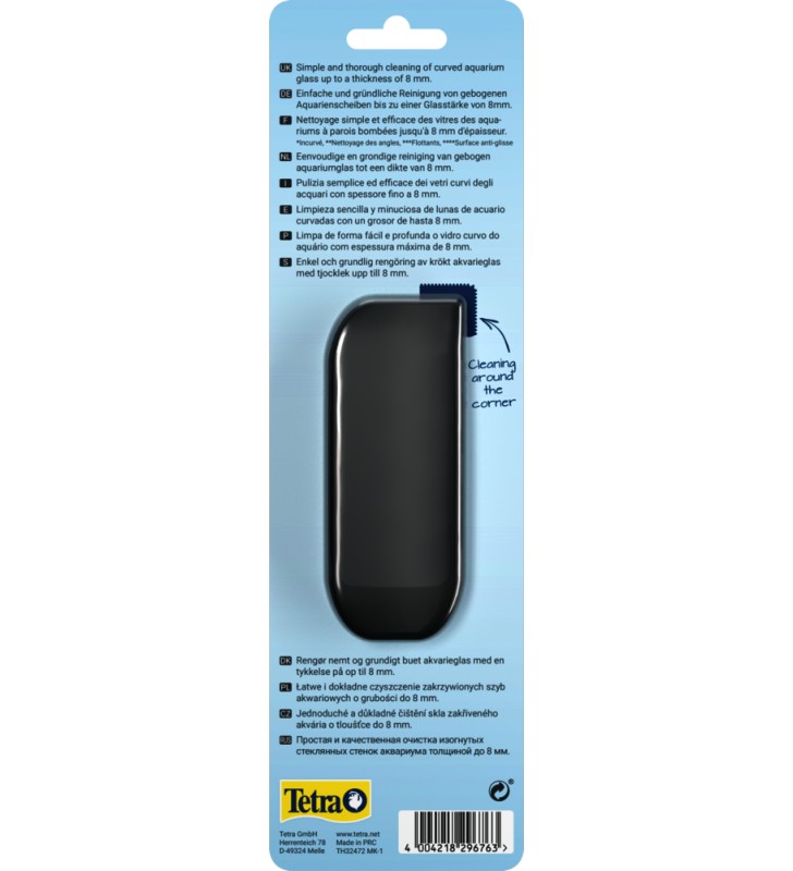 sometimes difficult to clean. The flexible shape of Tetra Magnet Cleaner Flexible adapts perfectly to any type of aquarium glass.