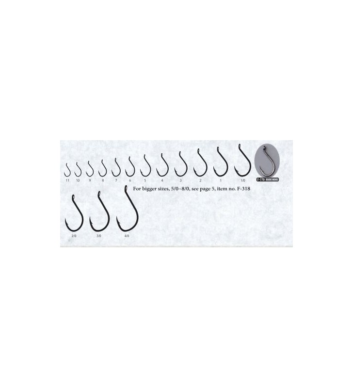 Powerful chemically tapered black nickel eye hook, very fine but strong for all types of fish.