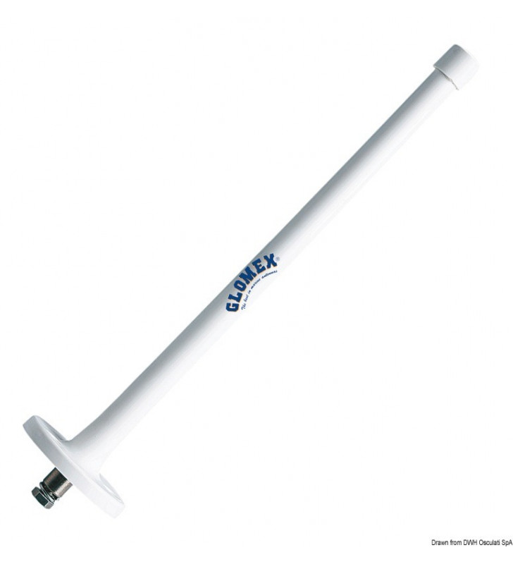 Impedenza 93 ohms, estremamente compatta (lunghezza cm 30) é stata pensata come antenna di serie su scafi con predisposizione di impianto radio. Completa di base e di cavo da 3 metri, é in nylon anti UV.