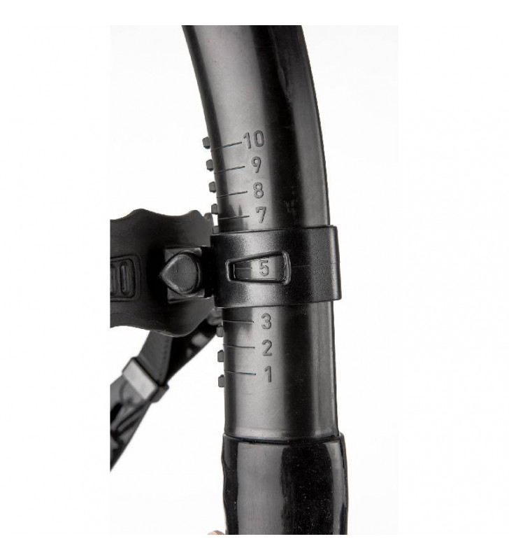 The Seac Buddy swim snorkel is the ideal companion for swimmers who want to improve their technique and train more focused, without having to think about breathing. The soft silicone mouthpiece and orthodontic shape ensure a perfect seal in the mouth, even during turns. The hydrodynamic profile reduces friction with the water, making the Buddy stable and facilitating breathing. The adjustable and lightweight bracket, with integrated bearing, allows for a comfortable and customizable height while remaining very stable, so it doesn't bother the swimmer, especially during freestyle, breaststroke, or butterfly strokes. A quick-release system on both sides ensures greater safety, even when swimming in open water. A purge valve with a channel for quickly expelling excess water. The Buddy is the ideal companion for swimmers who always want to improve.