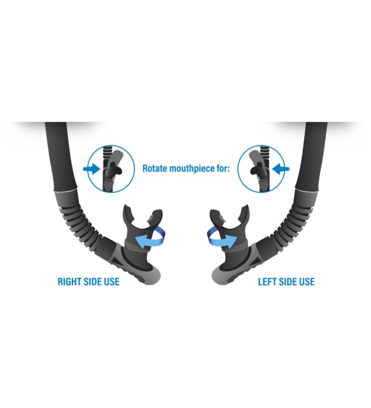SEAC Reverse is the comfortable snorkel that is easy to attach to the mask, on both the right and left side.