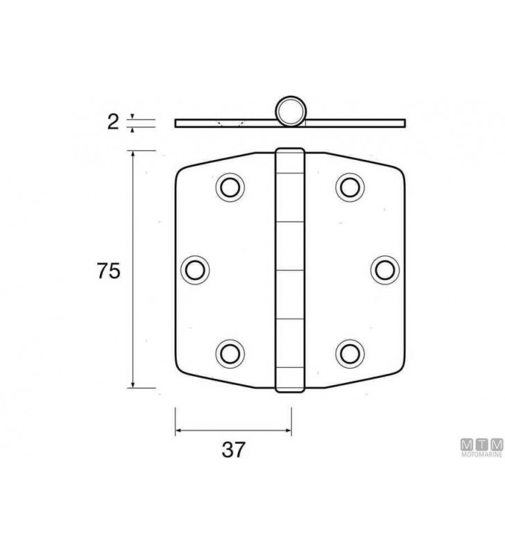 MTM SQUARE LARGE H75 X L74 2MM HINGE IN STAINLESS STEEL