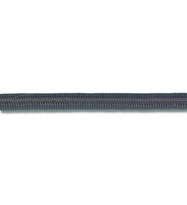 Elastic cord composed of rubber latex on the inside and covered with polyester multifilaments on the outside.
