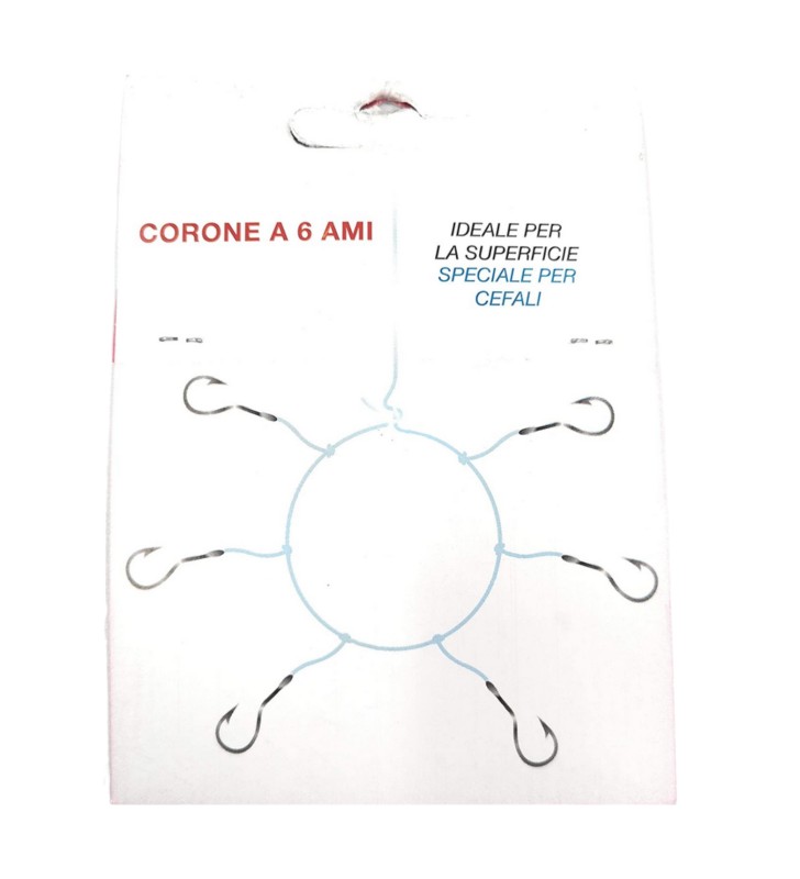 The Tecnofil 6-hook handcrafted crown (beaded knot saver type) is an Italian accessory specifically for surface fishing for mullet, white bream and salema.