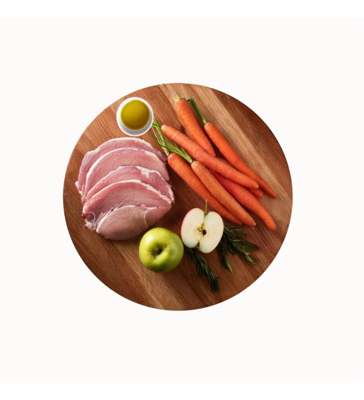 Hypoallergenic formula based on pork and marshmallow for easier digestion.
