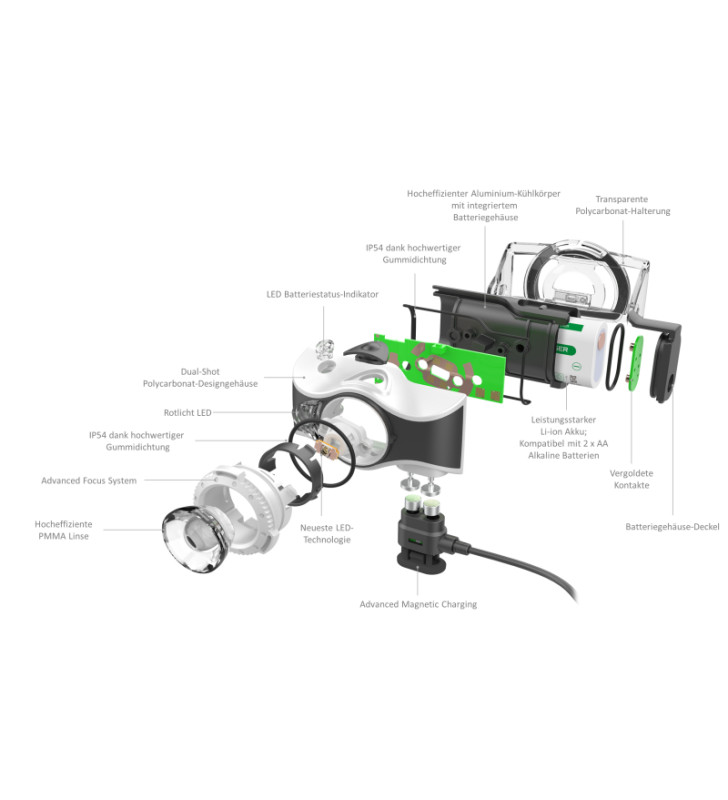 An easy-to-use magnetic charging system charges the batteries quickly but, if necessary, you can replace them with standard AA batteries.
