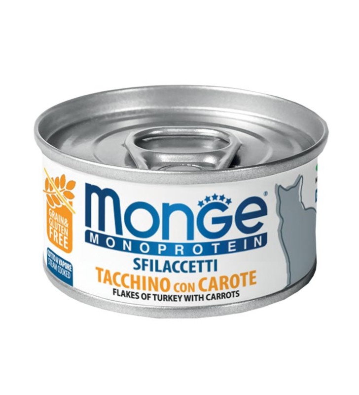 MONGE MONOPROTEIN TURKEY SHREDDED WITH CARROTS 80GR