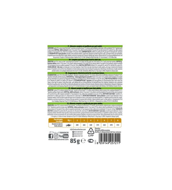 NATURAL TRAINER ADULT CAT SENSITIVE WITH LAMB 85GR