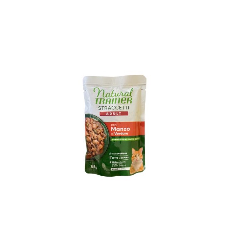 NATURAL TRAINER CAT STRIPS BEEF VEGETABLES 85GR