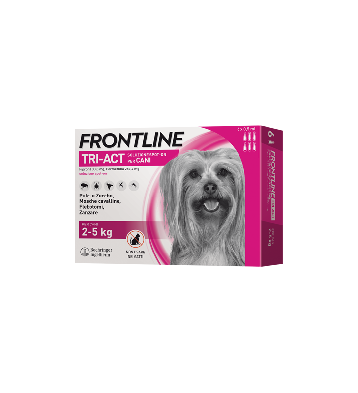 Frontline Tri-Act® is a spot-on repellent, insecticide and acaricidal solution for dogs.