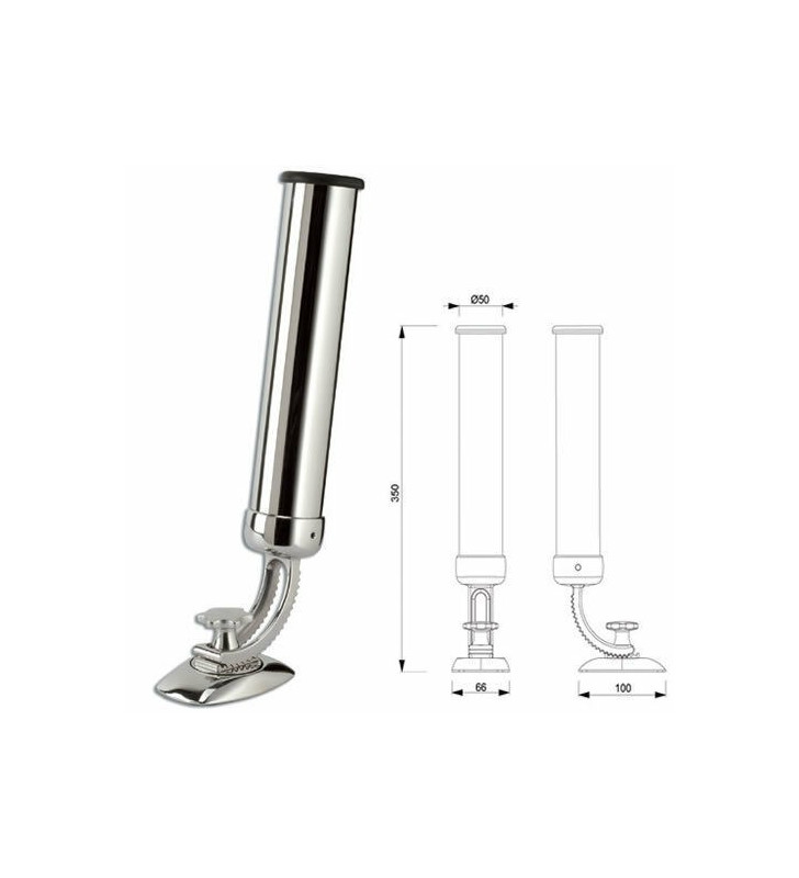 Wall-mounted rod holder in Aisi 316 stainless steel.