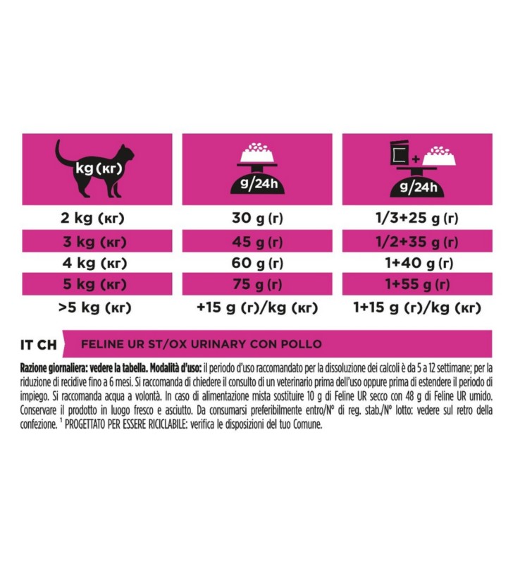 Complete dietetic food for adult cats for the dissolution of struvite stones.
