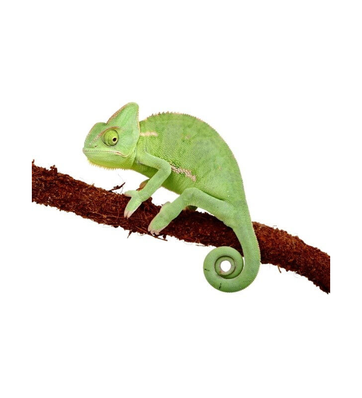 It is an ambush predator, and is capable of remaining motionless and camouflaged, for very long times. These chameleons are omnivorous animals. Although their main diet consists of insects, they sometimes consume the leaves, flowers and fruits of various plants. This can frequently be observed in dry periods. Like all chameleons, they prefer to drink water droplets on their leaves. They don't always recognize standing water, and can become dehydrated if that is their only source. The veiled chameleon eats mostly insects and their larvae, arthropods and small animals present in their environment, although its favorite preys are grasshoppers and crickets. It is very voracious and its long tongue can also trap large spiders and scorpions and small vertebrates such as lizards, geckos, or young birds. Only Yemen chameleon adults supplement their diet with plant foods, they eat green leaves, flowers and fruits. In any case they remain almost completely insectivorous. They are capable of capturing prey by "shooting" their slimy tongue out of their mouths at high speed. The tongue is also used as an organ of smell and taste. They often hunt for specific groups of prey. Green insects are particularly sought after, and the fact of supplementing the diet with plant material is a rare case among chameleons, a habit probably due to the main purpose of having a source of water for the dry season. Among the vegetable food, the animal particularly prefers the succulent leaves of the various Kalanchoe species. This food is ideal to balance the water shortage of the terrible months of drought that animals living in the steppes have to face. It usually licks the dew off the leaves.