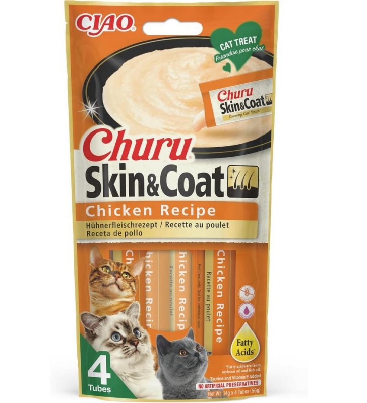 Delight your cat with Churu Snack Stick Cat SkinCoat 4x14G,