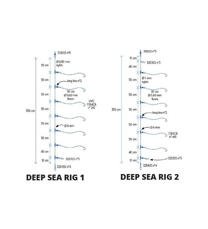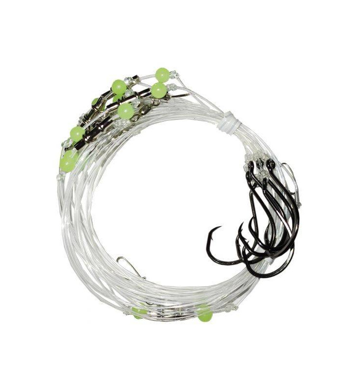 - 6 fluorocarbon terminals of 60/100° and a length of 30cm mounted on LONG LINE swivels and fixed between 2 glued phosphor beads