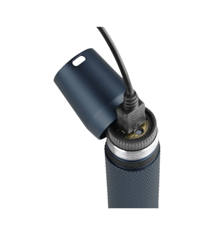 Rechargeable torch in anodized aluminum with 520 lumen power and 135 minutes of autonomy.
