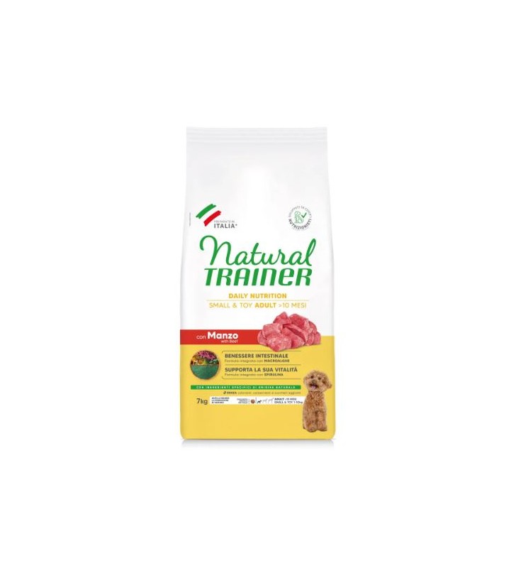 Natural Trainer Adult Small & Toy with Beef & Rice is a dry food, prepared with specific components of natural origin, capable of satisfying the specific nutritional needs of small breed adult dogs (from 10 months to 8 years).
