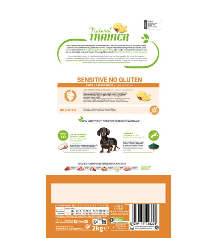 With Natural Trainer Sensitive No Gluten with Egg kibble you can offer your pet a complete and highly digestible food, specifically designed to meet the nutritional needs of dogs with food sensitivities.