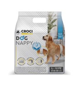 Dog Nappy sono Pannolini usa e getta a mutandina, altamente assorbenti che garantiscono asciutto e protezione al tuo amico a quattro zampe.