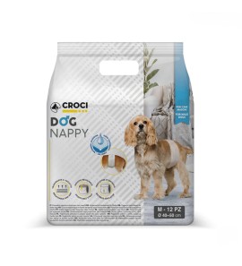 Dog Nappy sono Pannolini usa e getta a mutandina, altamente assorbenti che garantiscono asciutto e protezione al tuo amico a quattro zampe.