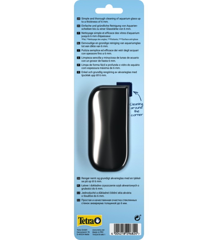 Tetra Magnet Cleaner Flat L è adatto ad acquari marini e di acqua dolce con vetri fino a 10 mm di spessore.