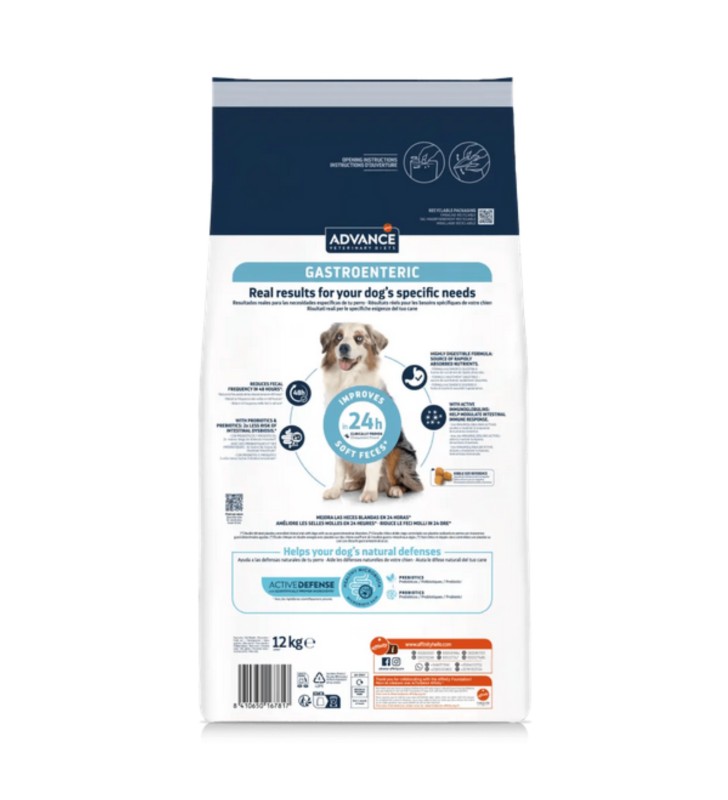 ADVANCE VETERINARY DIETS Gastroenteric contiene probiotici, prebiotici e immunoglobuline attive che contribuiscono a un microbiota intestinale sano, fondamentale per delle buone difese immunitarie.