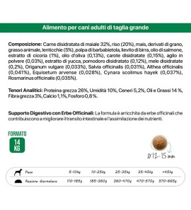 E' un alimento per cani adulti di taglia media e grande, formulato con una sola fonte proteica: