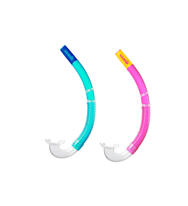 Boccaglio mares in siliter per bambini, struttura a curva ergonomica e reggi snorkel in silicone morbido.
