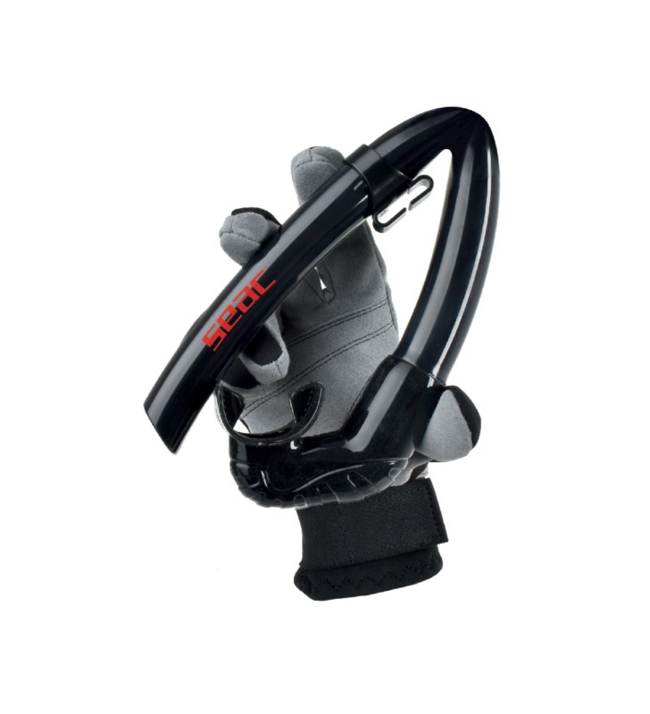 SEAC Reverse è lo snorkel comodo e facile da agganciare alla maschera, sia dal lato destro che dal lato sinistro.