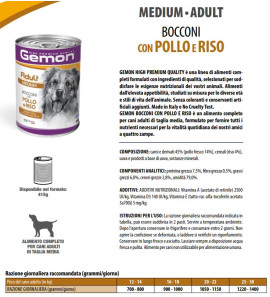 Gemon Medium Adult Bocconi con Manzo e Fegato è un alimento completo per cani adulti di taglia media.
