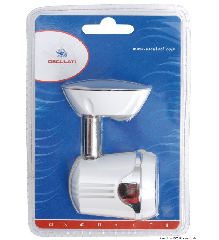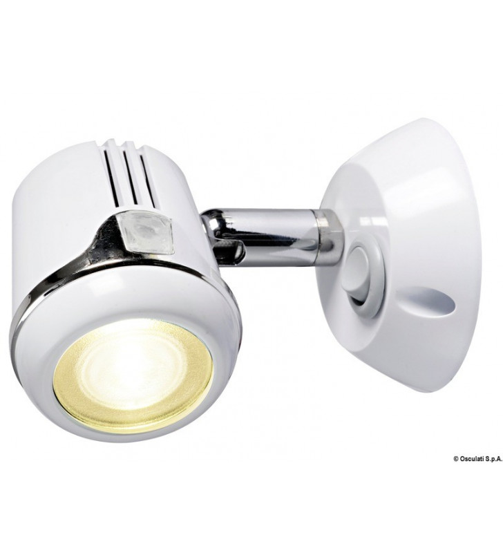 Faretto in abs con snodo in ottone cromato, con rotazione di 300°