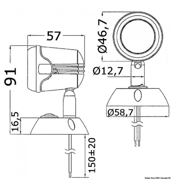 Luce alogena completamente stagna con lente in plexiglas trasparente. Faro molto robusto