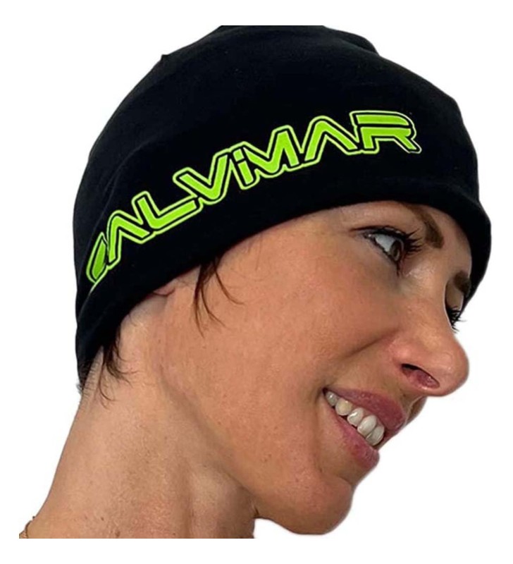 SALVIMAR CAPPELLO IN PILE NERO CON SCRITTA VERDE