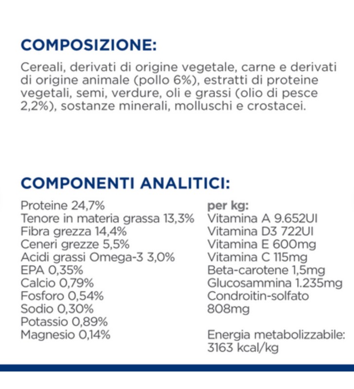 olio di pesce (2,3%), olio di noce di cocco, minerali, carote disidratate,