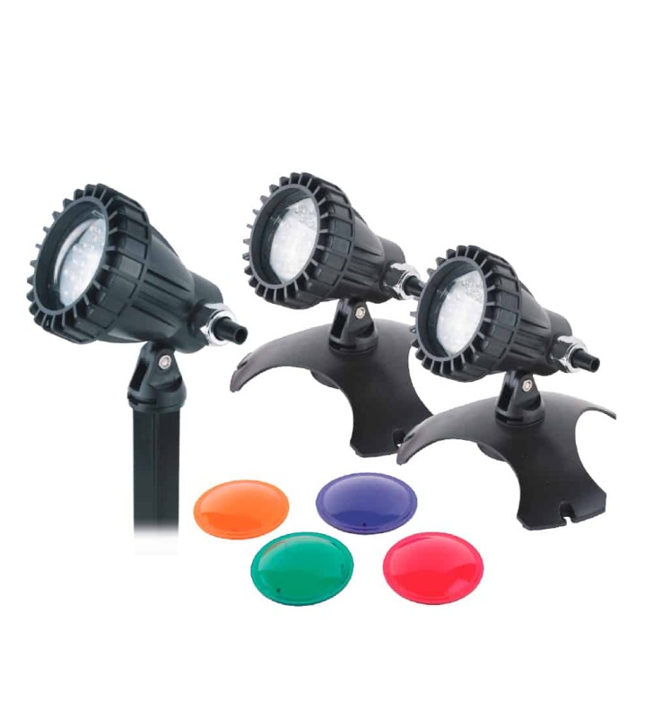 Set d’illuminazione LED per laghetti, fontane e cascate con 3 punti luce