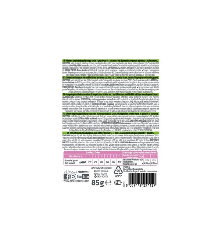 NATURAL TRAINER GATTO KITTEN E YOUNG TACCHINO 85GR