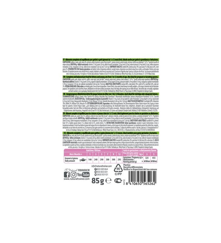 NATURAL TRAINER GATTO KITTEN E YOUNG TONNO 85GR