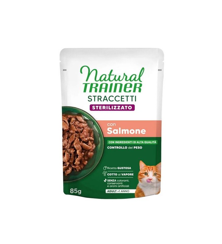 NATURAL TRAINER STERILISED STRACCETTI GATTO SALMONE 85GR