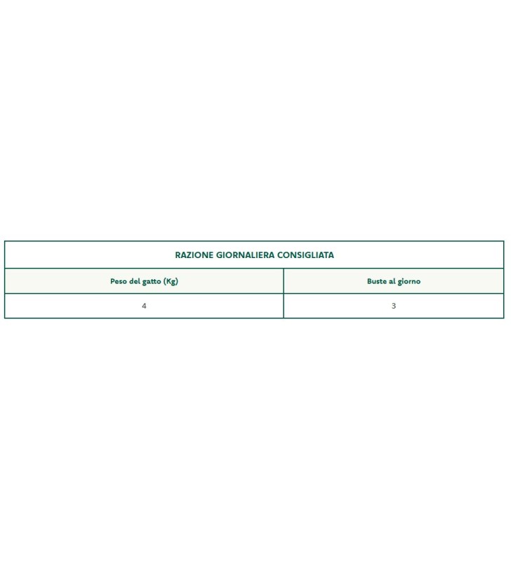 proteina grezza 7%, grassi grezzi 4%, fibre grezze 0,5%, ceneri grezze 2%, umidità 82%.
