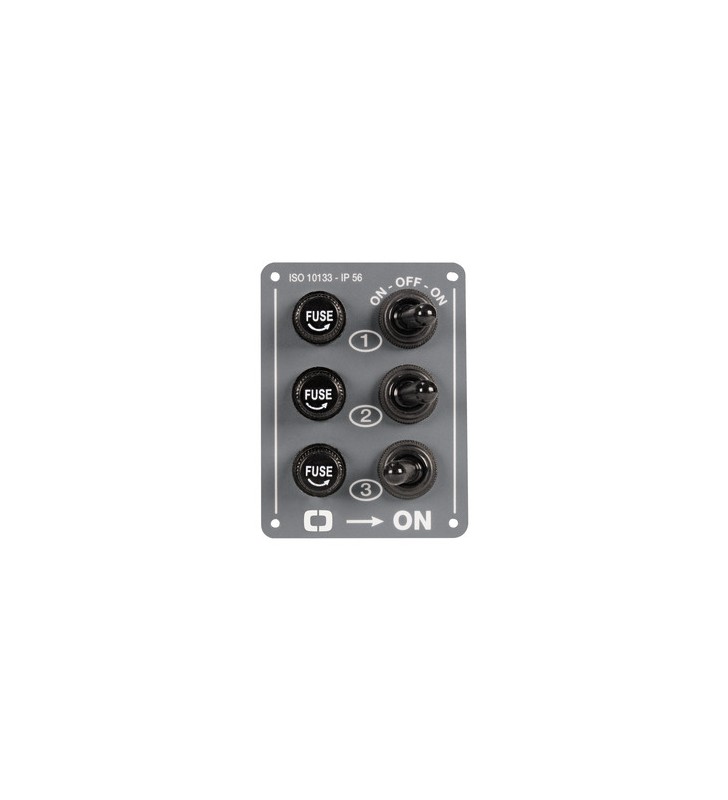 Pannello in ABS con interruttori impermeabili e fusibili.