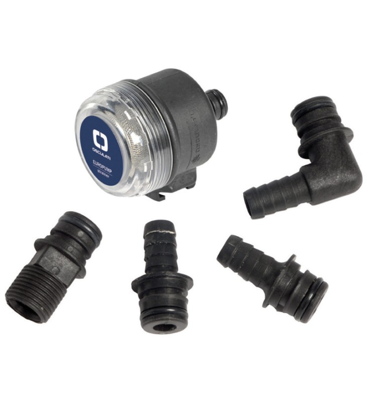 Completa di filtro + 4 raccordi, 2 da 1/2" filettati + 2 da 14 mm con portagomma da 1/2".