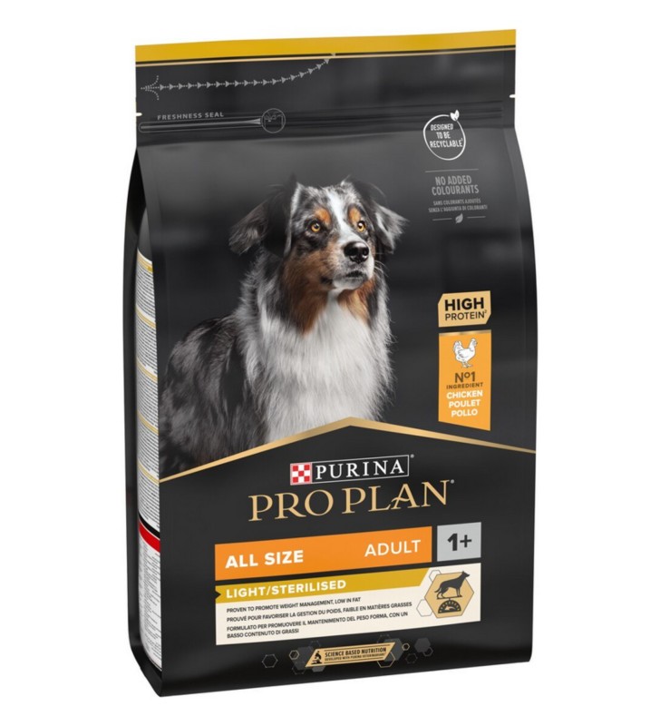 Alimento per Cani Adulti tendenti al Sovrappeso o Sterilizzati, per tutte le Taglie, Ricco in pollo.