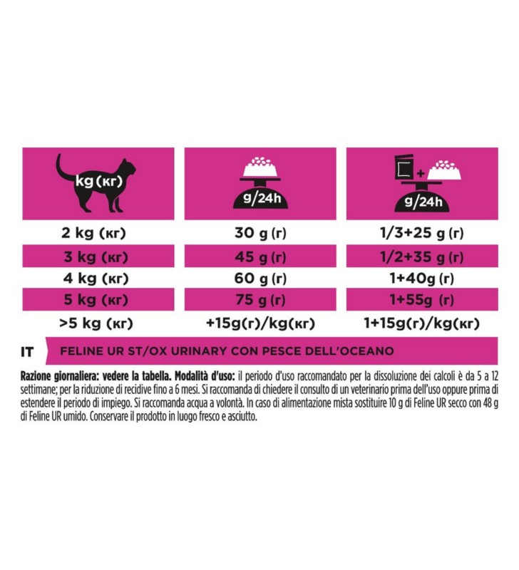 E' formulato anche per la gestione nutrizionale della malattia dell'apparato urinario inferiore dei felini.