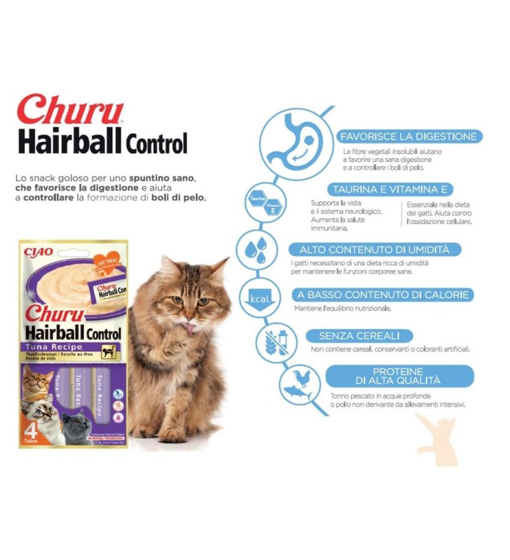 CHURU STICK CREMOSI AL TONNO HAIRBALL CONTROL 4 STICK