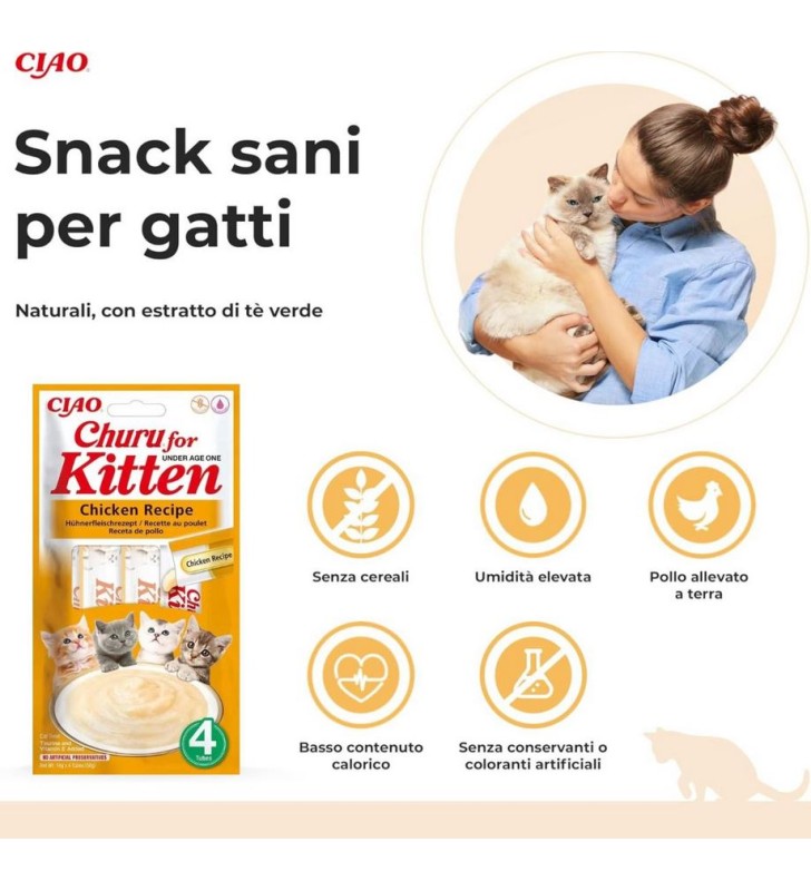 i baffi! Lo snack Churu Snack Stick Kitten 4x14G è una purea deliziosa