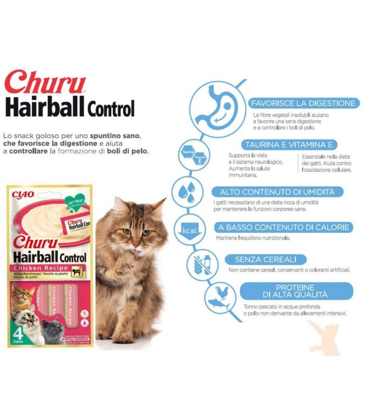 CHURU STICK CREMOSI AL POLLO HAIRBALL CONTROL 4 STICK