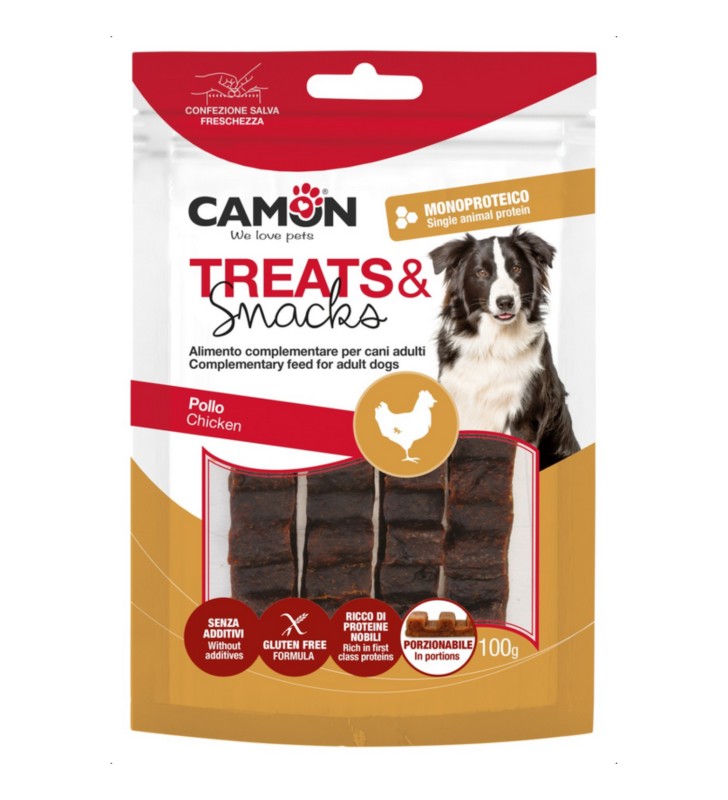 Sfizioso snack porzionabile a forma di barretta per cani, al gusto di pollo.