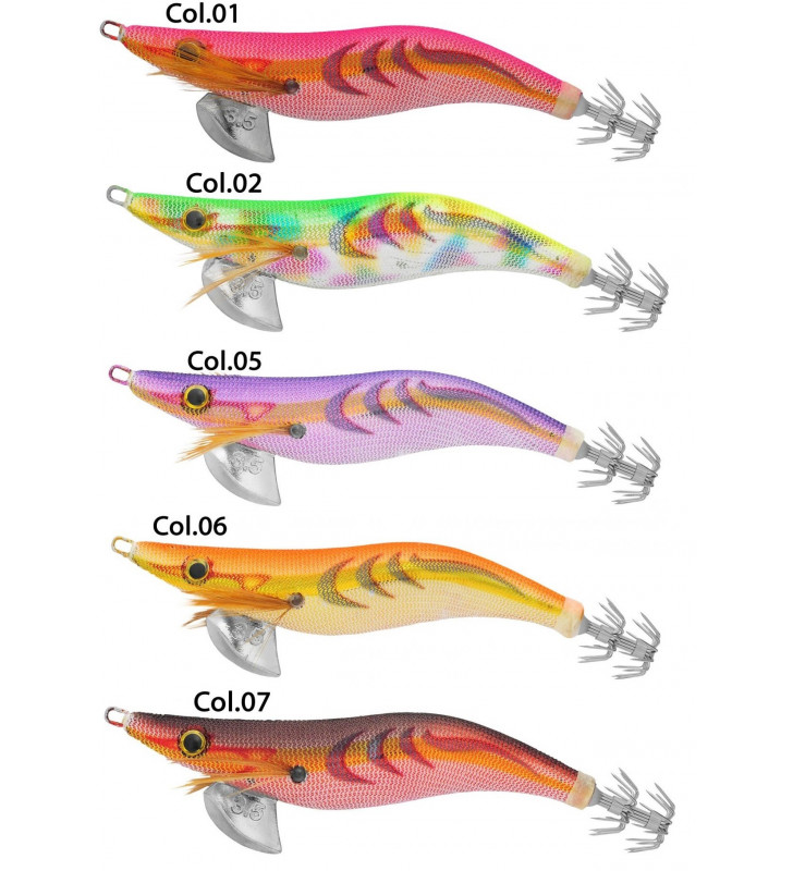 Serie di artificiali per cefalopodi rivestiti di tessuto finissimo caratterizzati
